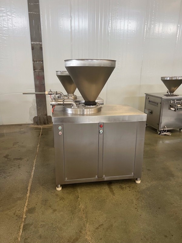 Μια μηχανή κλύσματος κρέατος, ή μια μηχανή γεύσης κρέατος ή γεμιστήρα λουκάνικα, χρησιμοποιείται στη βιομηχανία επεξεργασίας τροφίμων για να γεμίσει περιβλήματα με μείγματα αλεσμένου κρέατος.Αυτό το μηχάνημα χρησιμοποιείται συνήθως για την παραγωγή διαφόρων τύπων λουκάνικα και άλλα προϊόντα γεμισμένου κρέατοςΗ διαδικασία αυτή περιλαμβάνει το φόρτωμα της μηχανής με το παρασκευασμένο μείγμα κρέατος, το οποίο στη συνέχεια σπρώχνεται μέσω ενός ακροβωτίου σε ένα περίβλημα, συνήθως κατασκευασμένο από φυσικά ή συνθετικά υλικά.